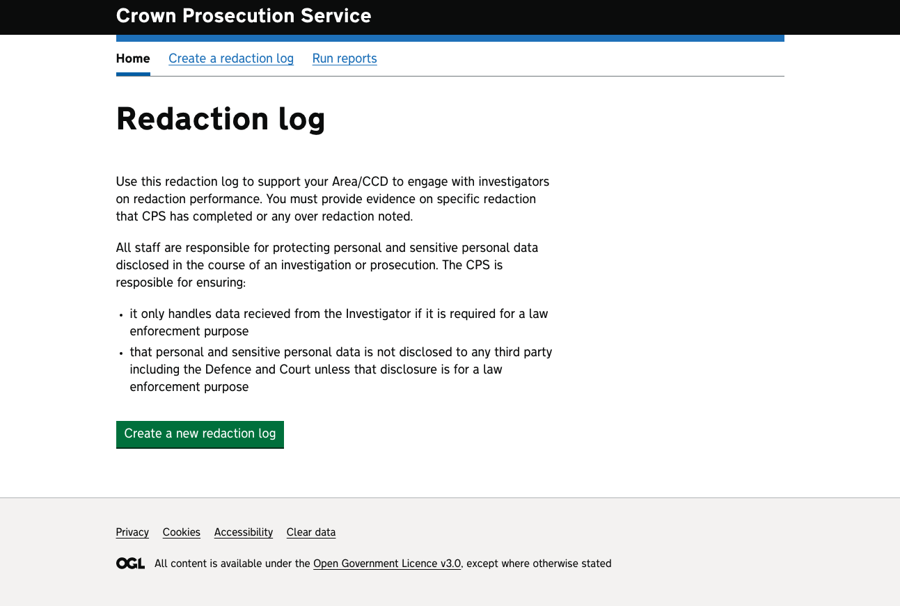 We have made 2 sketches of the redaction log journey - 1. Using the GDS patterns in a traditional way and 2. Keeping the GDS look and feel but keeping the general layout of what has currently been built