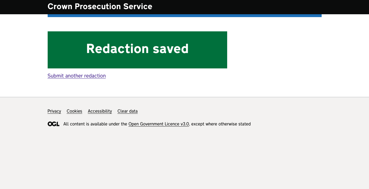 Add the redactions one by one to the case, clicking ‘add another redaction’ at the bottom will let the user add more redactions to the case.