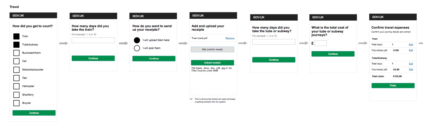 Not really an option as users quite often didn’t know what they could claim for and we couldn’t tell them what receipts they should upload. We were hoping we could identify or mark what the receipts were at the beginning of the journey to simplify the process but it did not work.