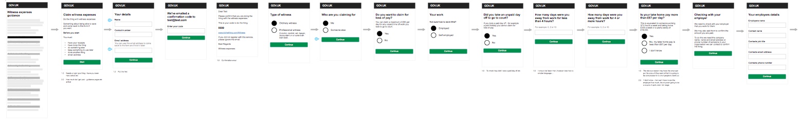 This is a fairly standard GDS style linear journey. The user has guidance up front and then is asked a series of questions that branch off depending on their answers to figure out what and how much they are entitled to claim.
