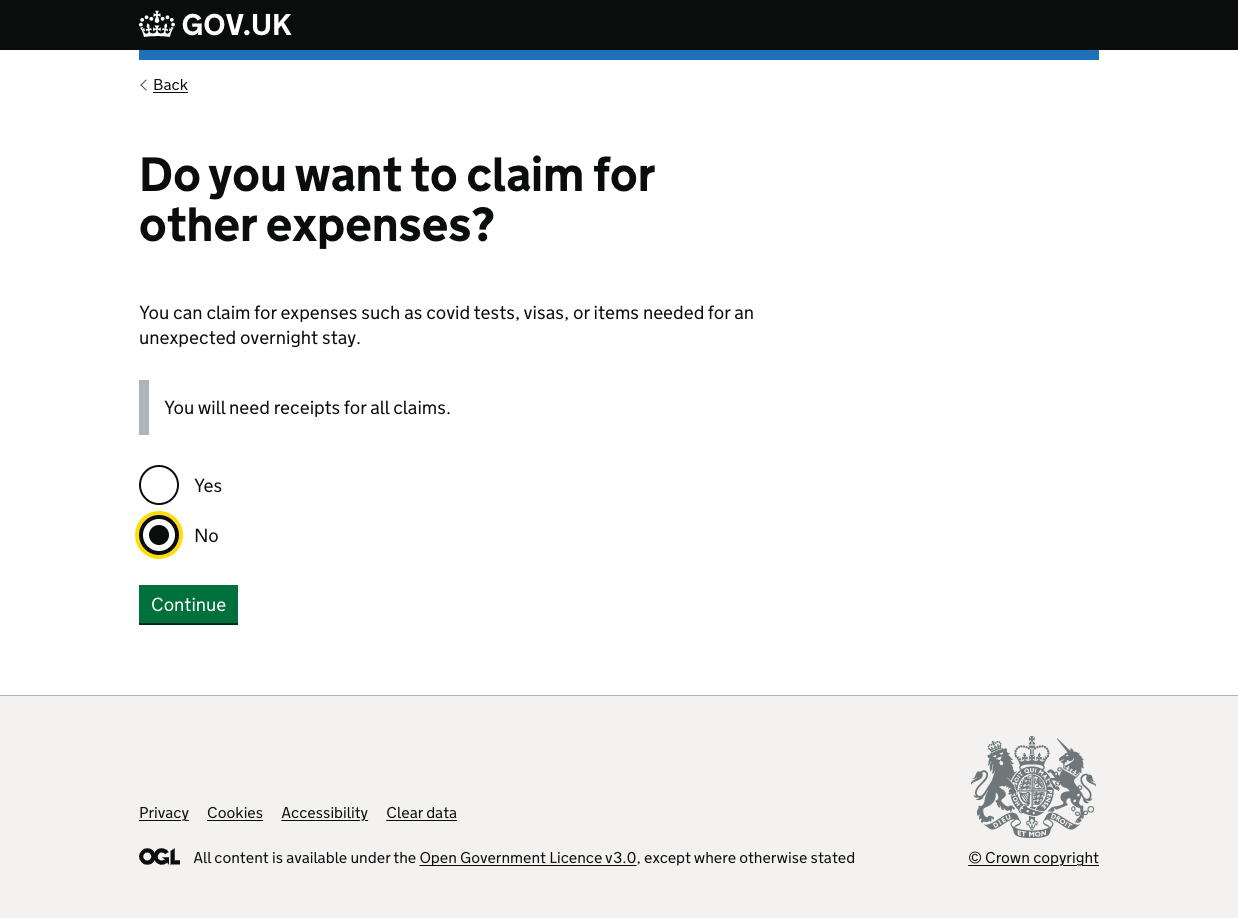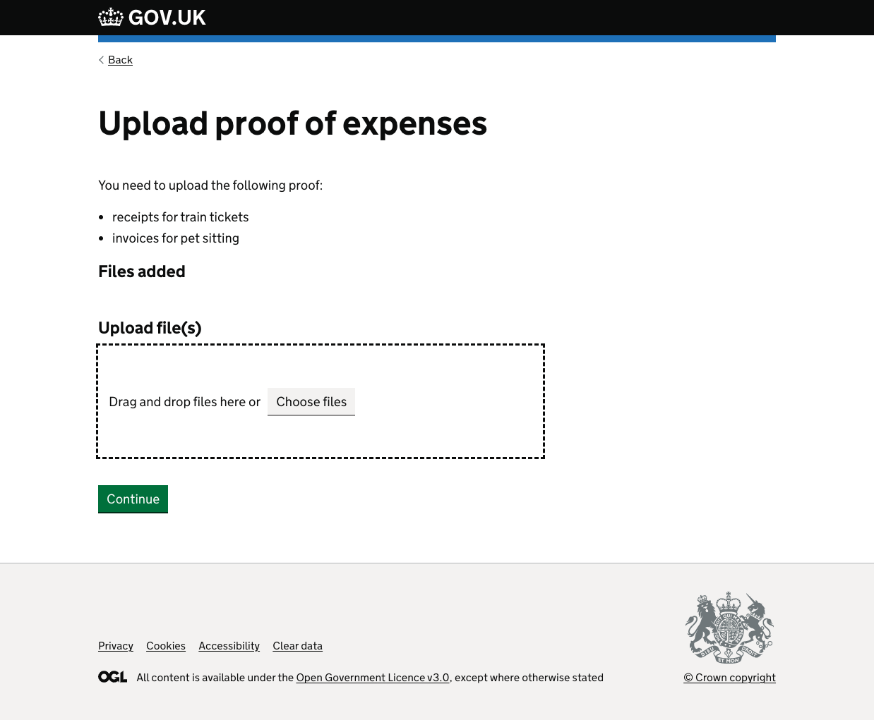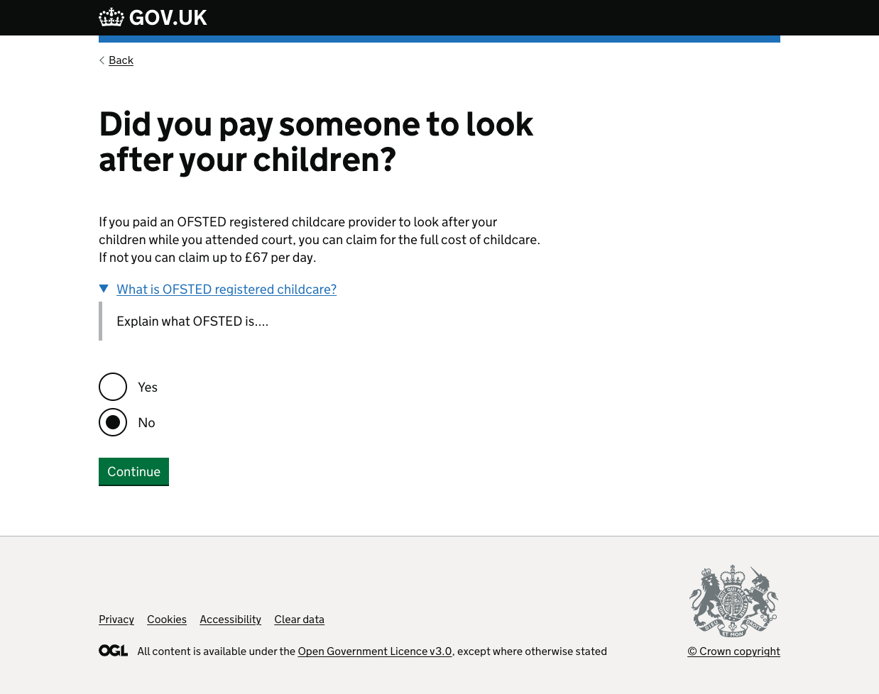We also considered whether we front-load the login page with a list of requirements for a user - e.g. evidence of receipts, details of the court dates - to ensure a user didn’t have to leave the journey as they didn’t know what they needed to complete it.