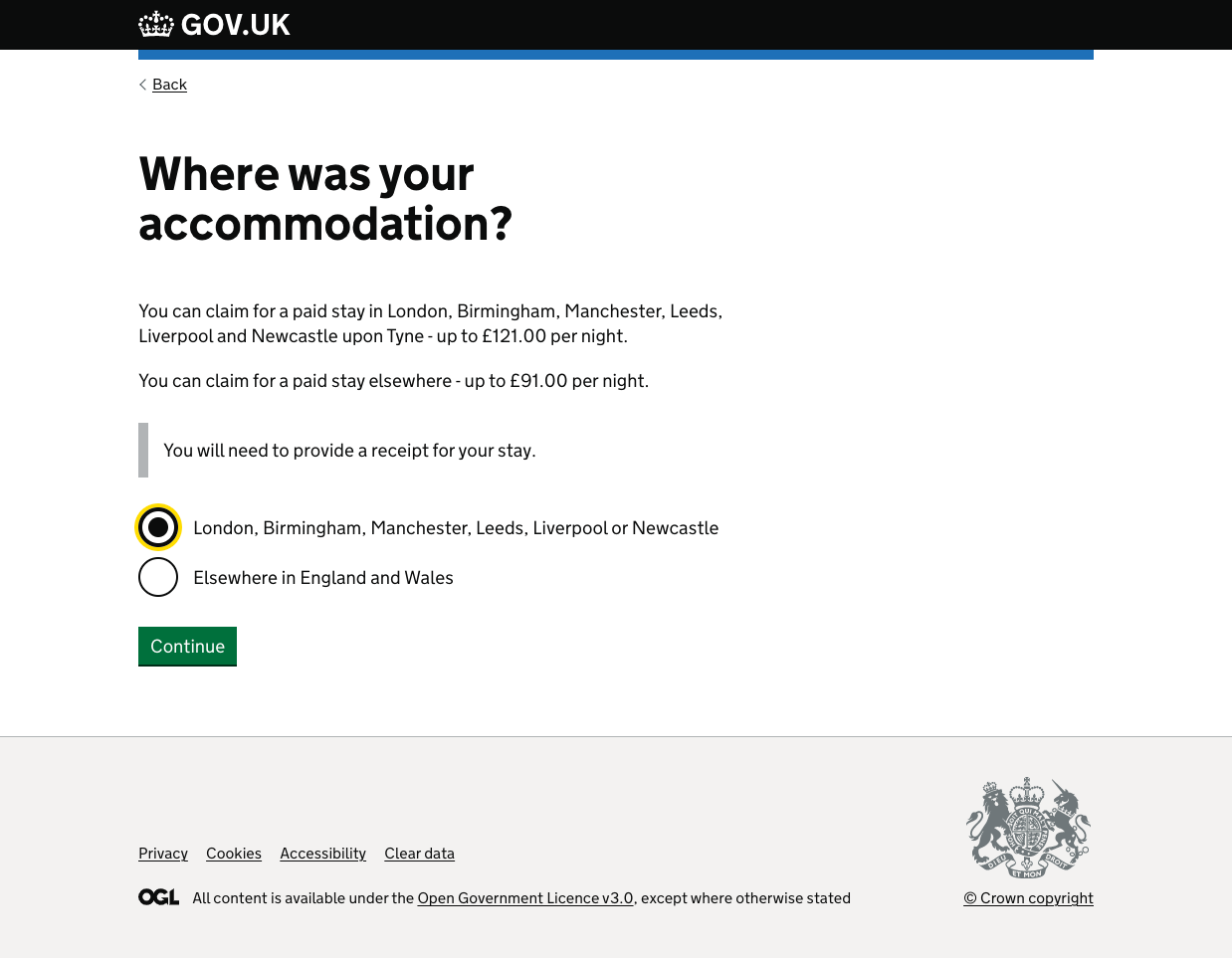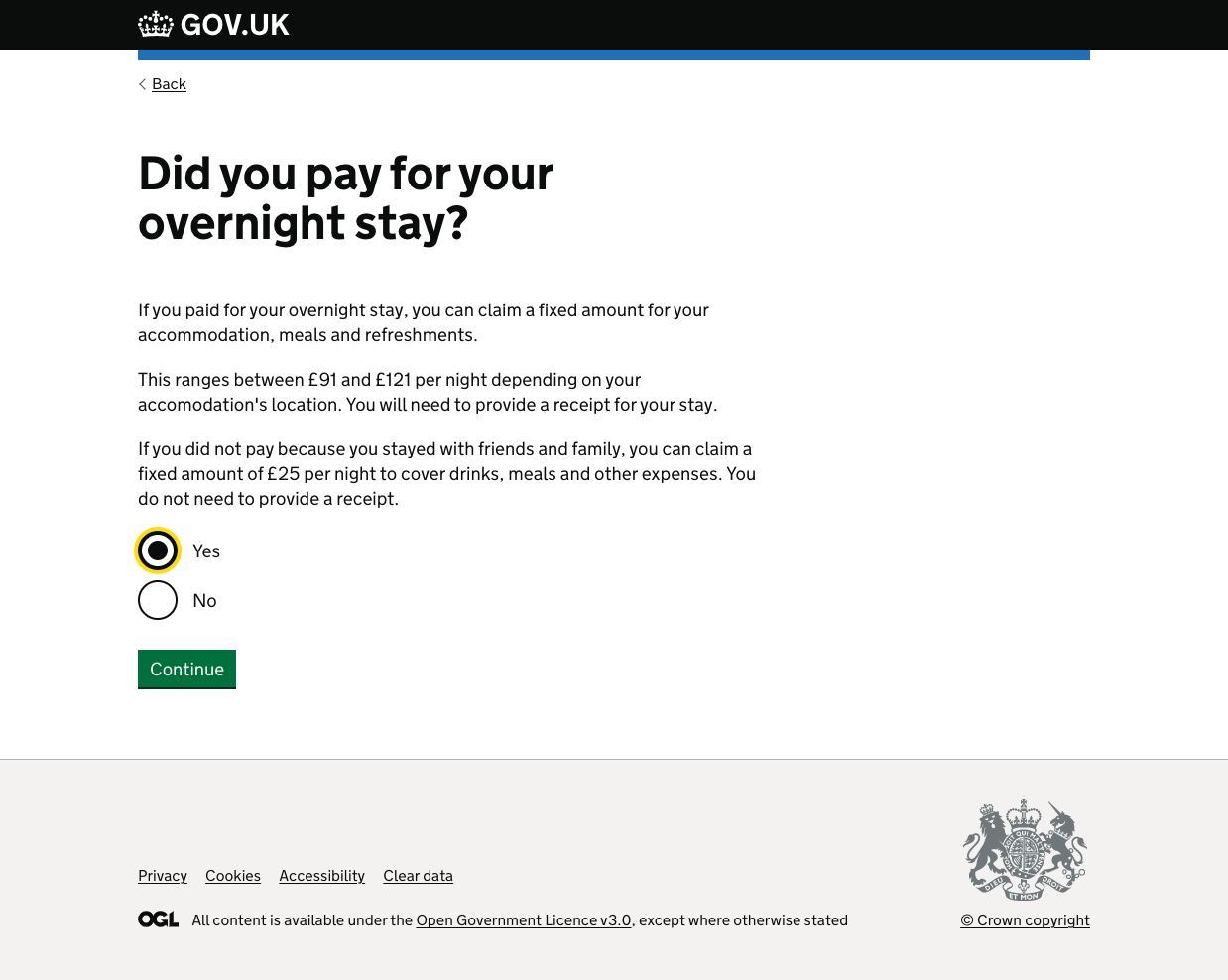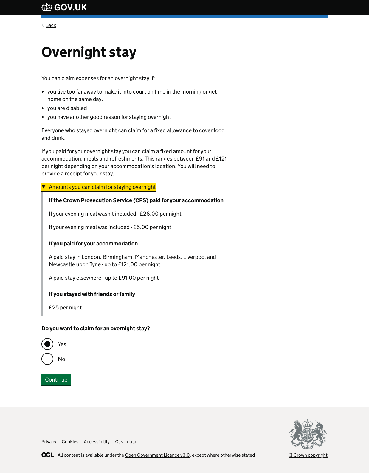 The policy on overnight stay has a lot of options that affect how much you can claim - whether you paid for yourself, stayed with friends, which city you were in etc. This is our first attempt to explain it to users.