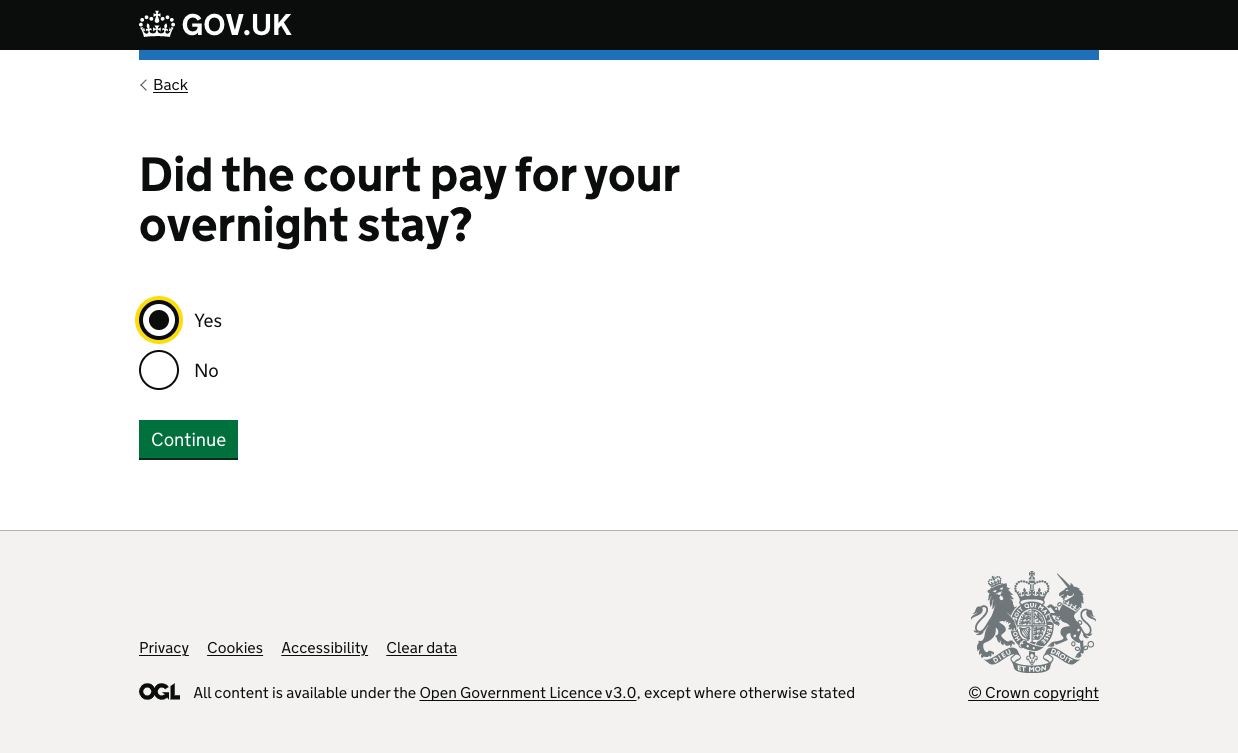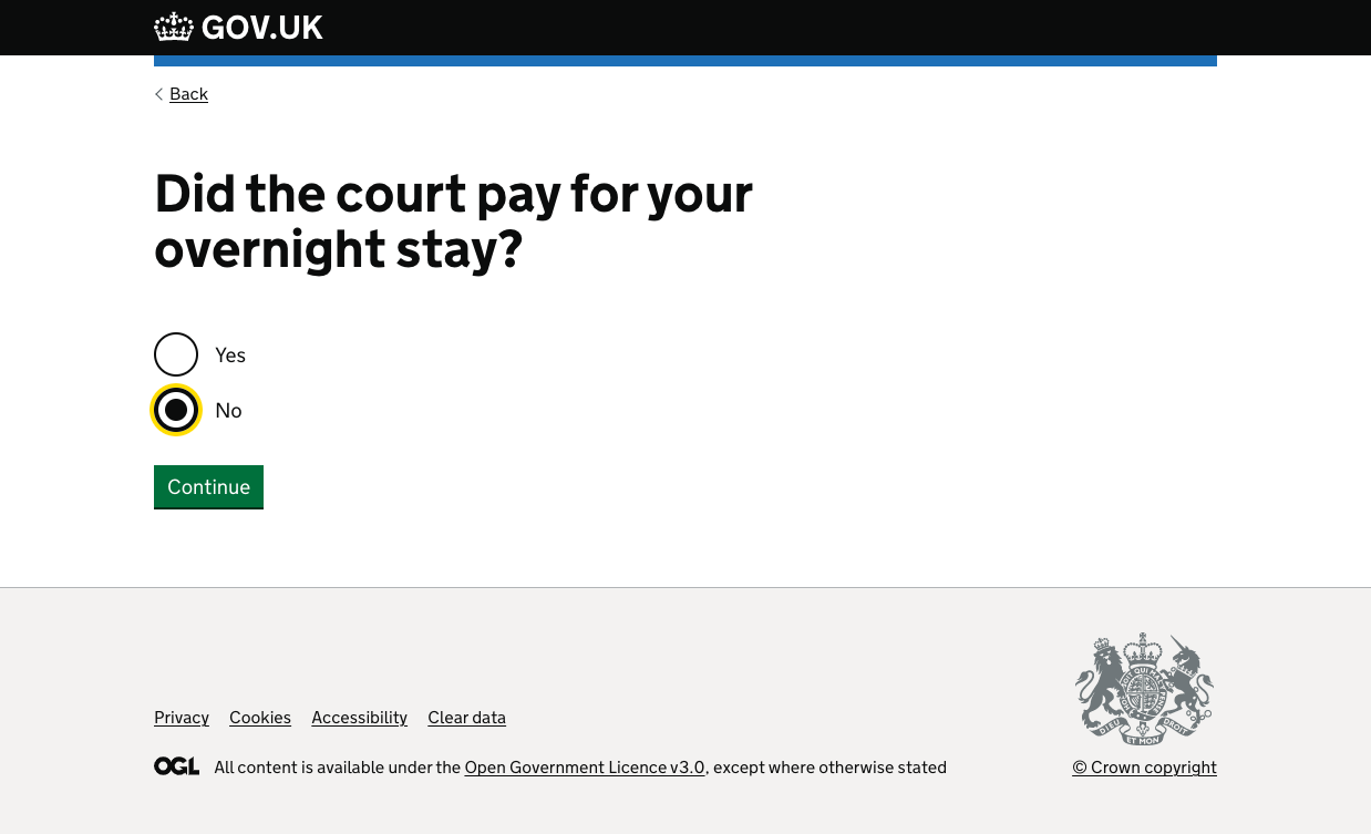 If the court payed for the users overnight stay, they may still have had to pay for an evening meal themselves. If so they can claim an extra £21 a night to cover this.