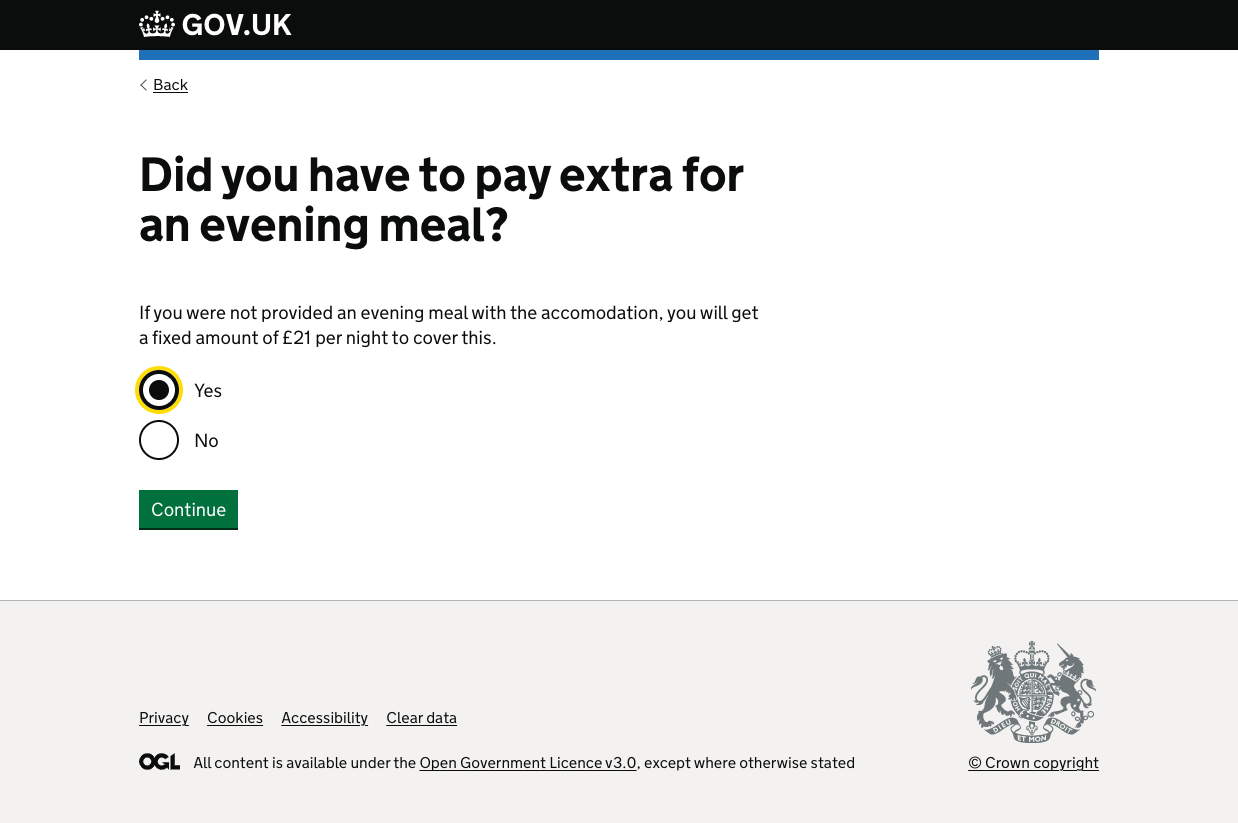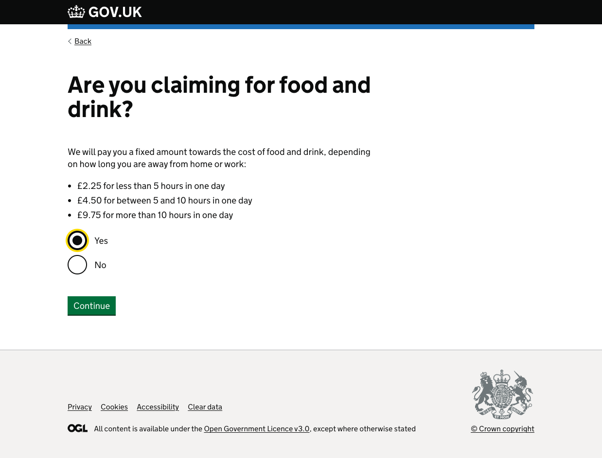 This was often the first time users had come across the rates for food and drink. Users often expected to need receipts and be able to claim for the amounts they spent, this was a suprise and the actual rates (especially in London) we’re seen as too low