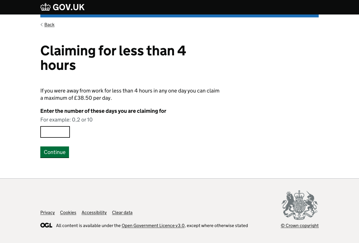 If users spent less than 4 hours away from work they will get upto £33.50 and £67 for a full day. This was to see how many days they had been away for less than 4 hours.