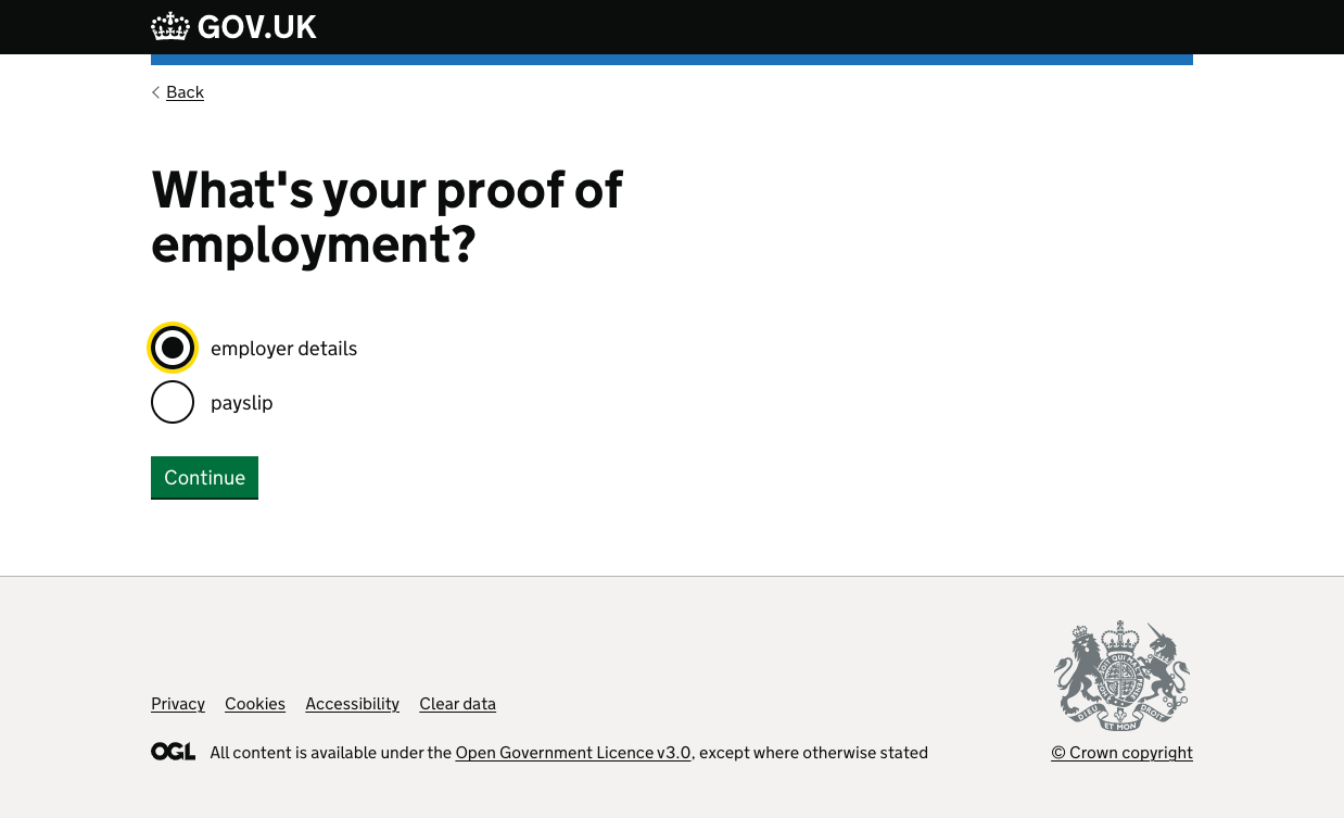 The notice about providing employers details or payslip needs to be clearer, why employers details, which payslip.