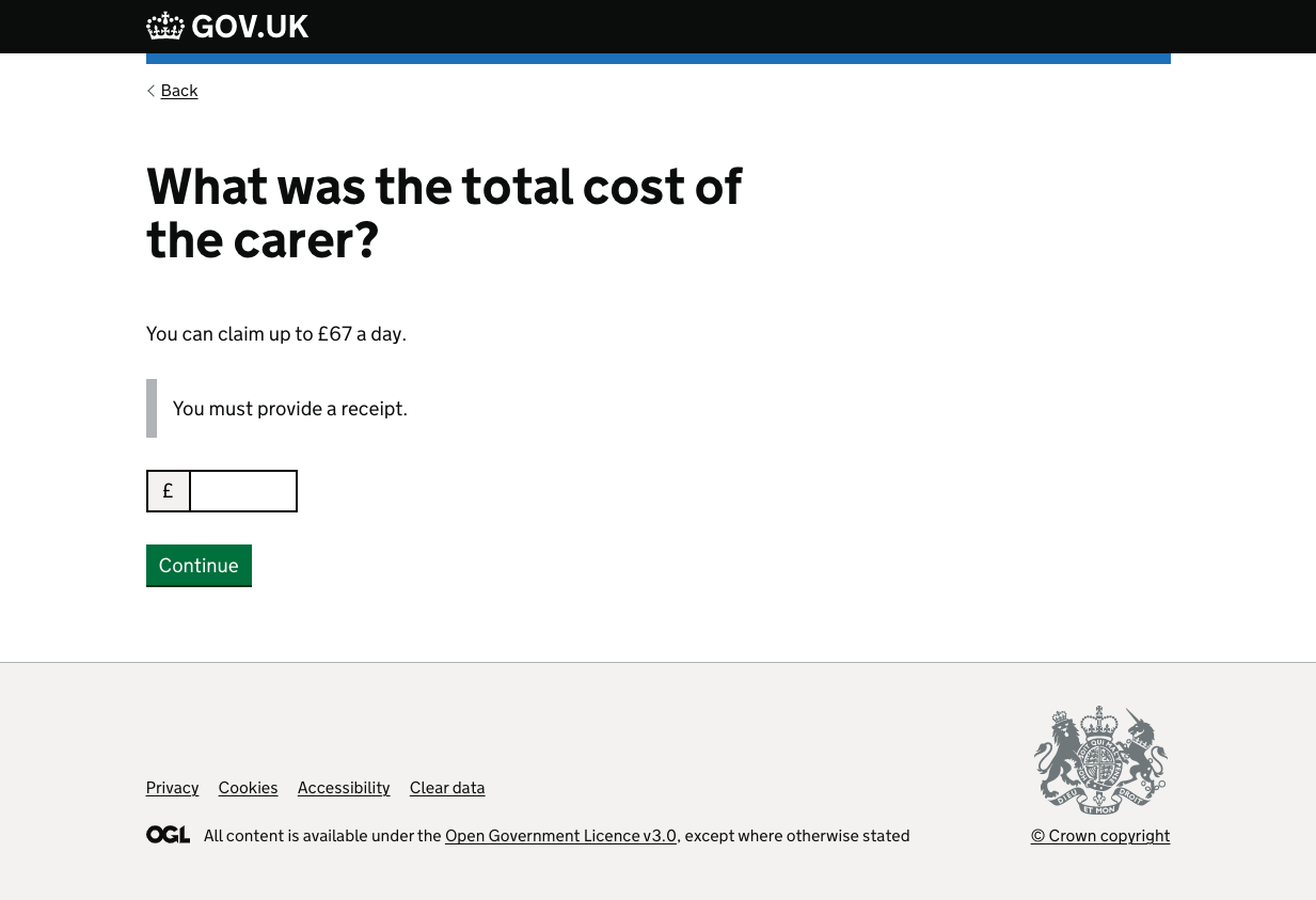 This is a new section, we followed the copy platform for childcare. We did debate if there was an ‘official’ accreditation that a carer could have (similar to Ofsted for childcare) but it doesn’t work in the same way so the policy is just to give a max of £67 to someone who needs to claim for a carer