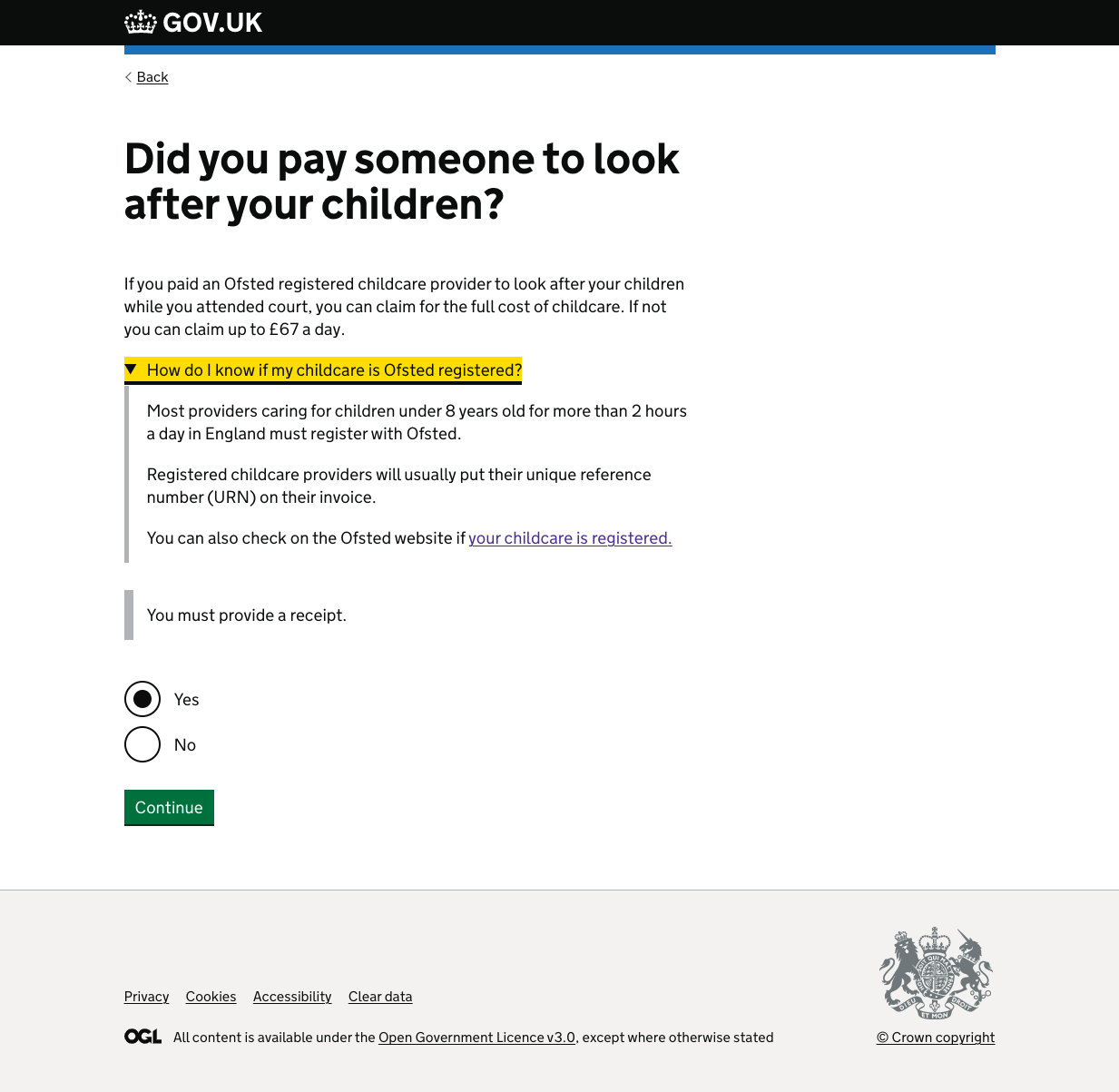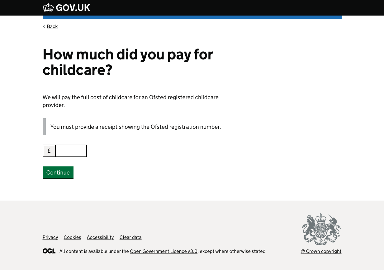 Users can claim for the full cost of childcare from an Ofsted registered provider, as long as they have a receipt.