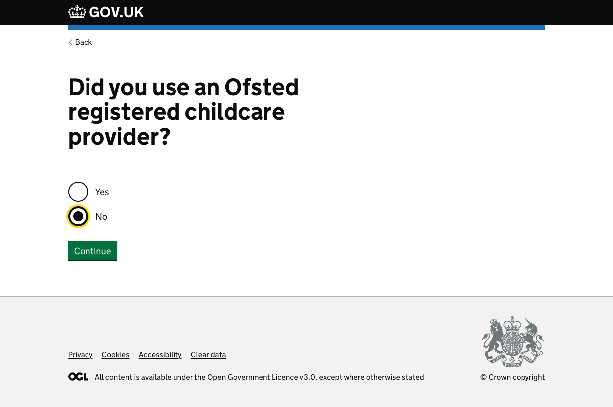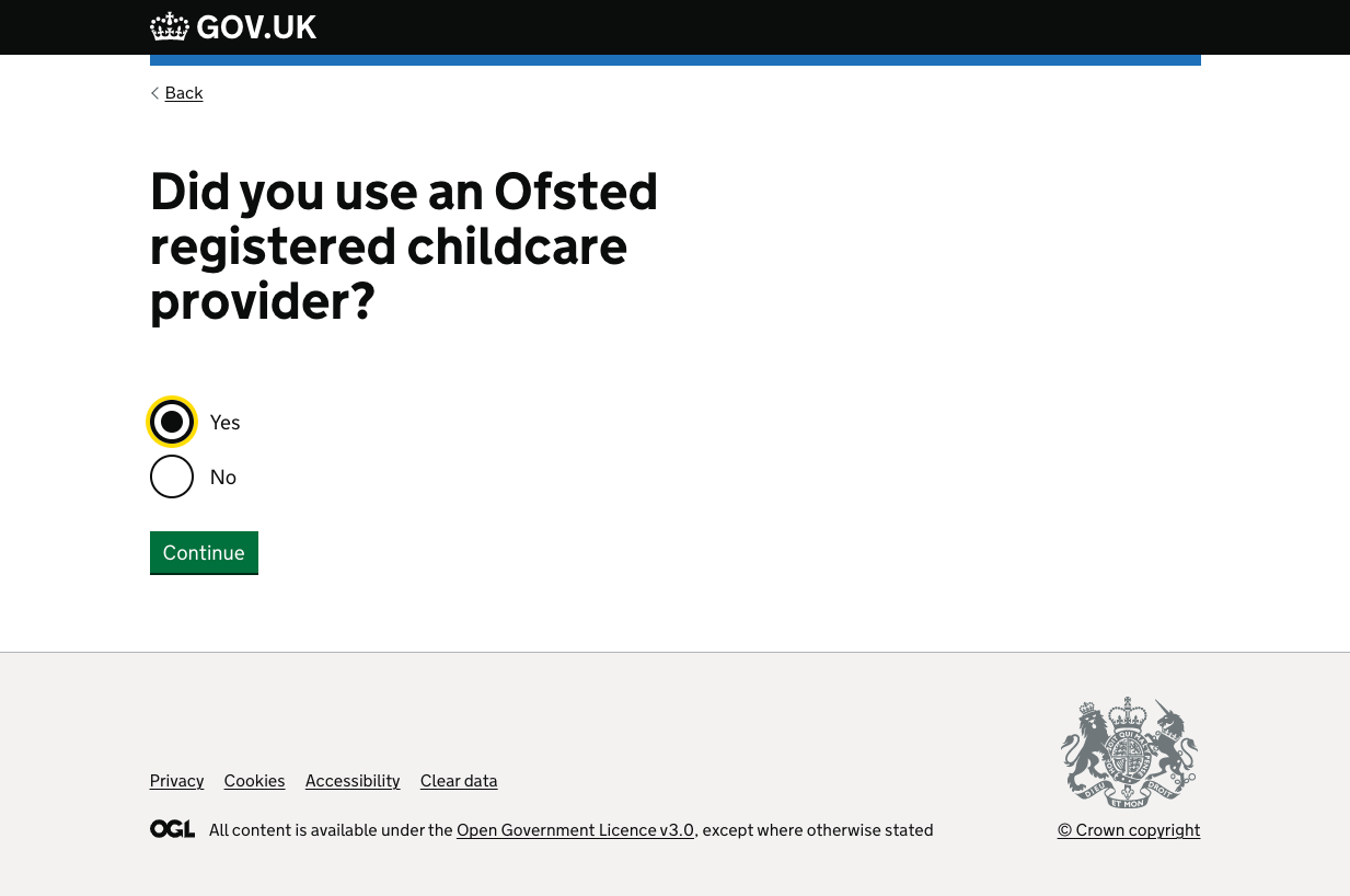 We made the content on this page clearer and simpler. Users who don’t know if there childcare provider is ofsted registered can check on the Ofsted website.